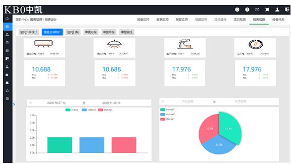 提供豐富的可視化功能,系統可以根據分類查詢用能情況,顯示當日、當月、用能的情況,也可以根據需要進行歷史數據的查詢,顯示歷史上月、上年的用能情況,生產能耗對比表。相關的報表提供同比、環比數據分析。也可根據歷史能耗值,設定某時間段內能耗報警閾值,進行超標預警。查詢數據可以以報表或曲線的形式顯示。報表可以根據需要選擇多種生成方式打印。系統通過多種數據提取、閾值限制,為企業的能耗管理措施提供全方位的數據支撐,確保能耗管理決策的高效性和正確性。